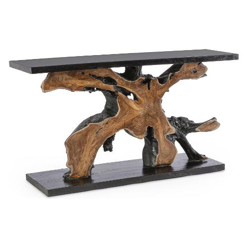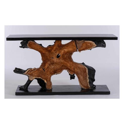 Struttura interna in radici di teak originali. Struttura esterna in legno Suar. Finitura a base di nitrocellulosa. Le forme originali create dal legno sono solo indicative, tutti i prodotti saranno diversi l'uno all'altro, con misure leggermente differenti