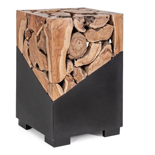 Piano in radici di teak con finitura a base d'acqua, base in acciaio verniciato a polvere epossidica. Le forme create dal legno sono solo indicative, tutti i prodotti saranno diversi l'uno dall'altro
