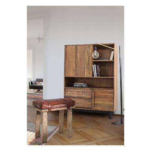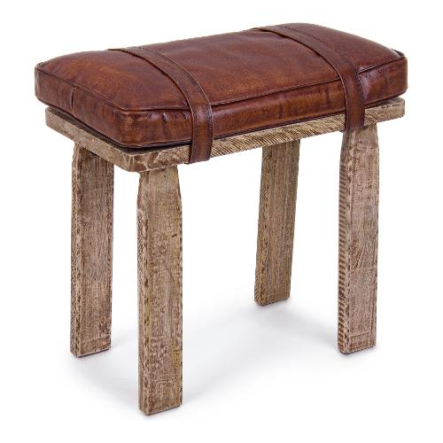 Struttura in legno di mango. Seduta imbottita in schiuma poliuretanica e rivestita in vera pelle di bufalo