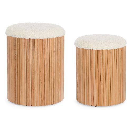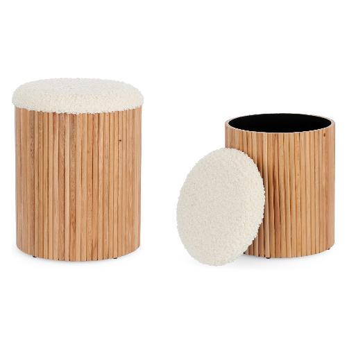 Struttura in MDF e compensato. Rivestimento esterno in legno pino. Coperchio rivestito in Poliestere effetto Lana. Densità imbottitura 30kg/m3