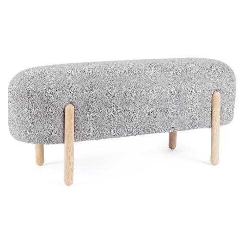 Struttura in compensato. Gambe in legno Rubberwood. Rivestimento seduta in Poliestere, effetto bouclé. Imbottitura in schiuma poliuretanica (densità 25kg/m3)