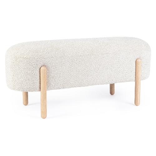 Struttura in compensato. Gambe in legno Rubberwood. Rivestimento seduta in Poliestere, effetto bouclé. Imbottitura in schiuma poliuretanica (densità 25kg/m3)