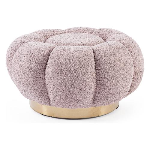 Struttura in compensato. Rivestimento in Poliestere effetto bouclé. Imbottitura in schiuma poliuretanica (densità 25kg/m3). Fondo con anello decorativo in acciaio verniciato color oro