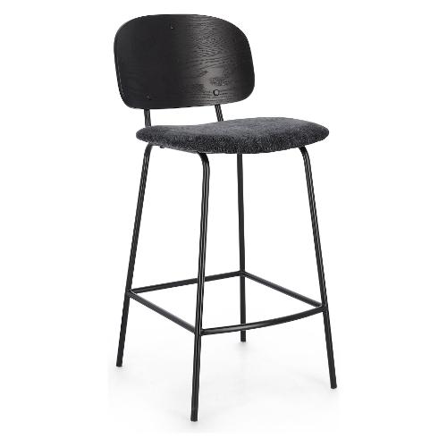 Struttura in acciaio verniciata a polvere epossidica. Schienale in compensato impiallacciato legno di pioppo. Seduta in compensato con rivestimento in 100% Poliestere