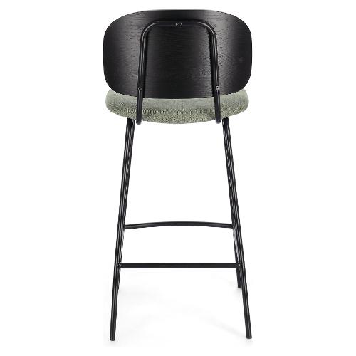 Struttura in acciaio verniciata a polvere epossidica. Schienale in compensato impiallacciato legno di pioppo. Seduta in compensato con rivestimento in 100% Poliestere