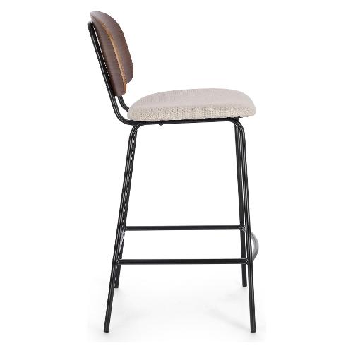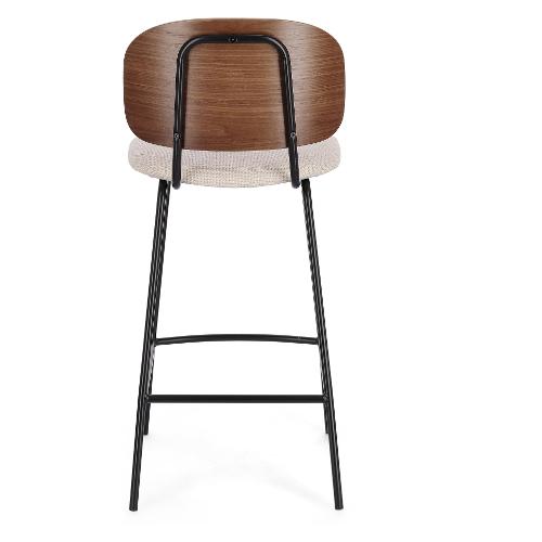Struttura in acciaio verniciata a polvere epossidica. Schienale in compensato impiallacciato legno di pioppo. Seduta in compensato con rivestimento in 100% Poliestere