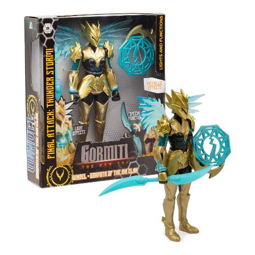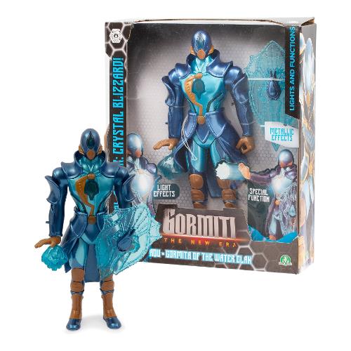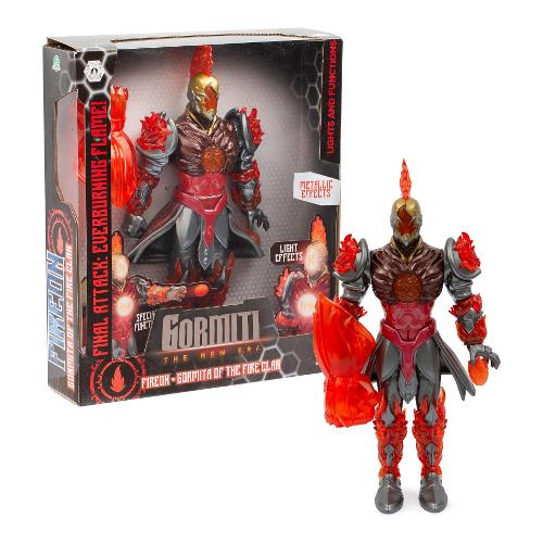Action figure alte 27 cm articolate e raffiguranti i quattro gormiti. Il personaggio include un accessorio personalizzato che riproduce l’arma del gormita. Il personaggio è dotato di una funzione attacco che replica la caratteristica mossa d’attacco vista nella serie tv. Inoltre possiede funzione luce che illumina punti specifici del corpo.