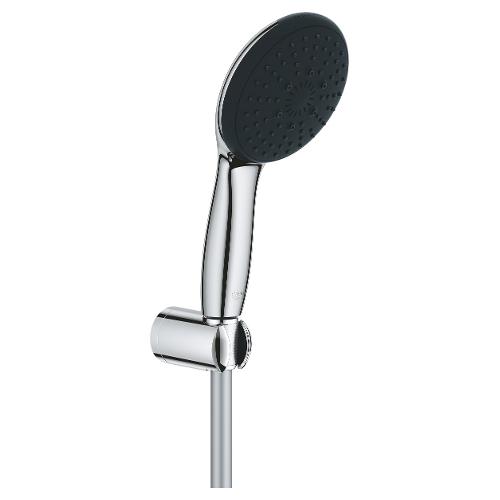 Manopola doccia con tecnologia grohe water saving per il risparmio idrico; sistema antiscottatura tramite canalizzazione interna dell'acqua. Kit include flessibile vitalioflex trend 1750 mm 1/2" e supporto a parete vitalio universal, non regolabile