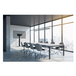 Neomounts FL45S-825BL1 MOVE Up è un supporto da pavimento per schermi piatti fino a 75" con una capacità di peso massima di 70 kg. Lo schermo può essere fissato bloccando le staffe con un lucchetto (non incluso). Il supporto è regolabile manualmente in altezza (104-157 cm), così come la testa della staffa. Il supporto da pavimento MOVE Up è dotato di un ingegnoso sistema interno di gestione dei cavi con varie uscite e ingressi per un uso flessibile (sopra, al centro dove è posizionato il lettore multimediale e in basso) e nasconde e instrada i cavi dal supporto da pavimento allo schermo. Il modello FL45S-825BL1 è dotato di una solida piastra da pavimento in acciaio con fori di fissaggio per avvitare il supporto al pavimento per una maggiore sicurezza. La piastra a pavimento è dotata di 2 maniglie per uno spostamento più sicuro.