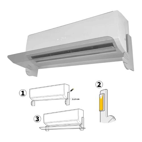 Grazie alla sua forma curva e alle sue tre angolazioni, il deflettore d’aria iGenio devia e concentra il getto d’aria fredda/calda verso il soffitto, fornendo una temperatura omogenea ed equilibrata in casa e ufficio evitando di essere esposti ad un soffio diretto. Il deflettore con barre in pvc espanso e pannello in policarbonato trasparente inoltre permette di vedere il display del condizionatore con la temperatura impostata. il deflettore iGenio è universale: si può abbinare a condizionatori split di qualsiasi marca/dimensione. L’installazione è semplice e veloce senza utilizzo di viti.