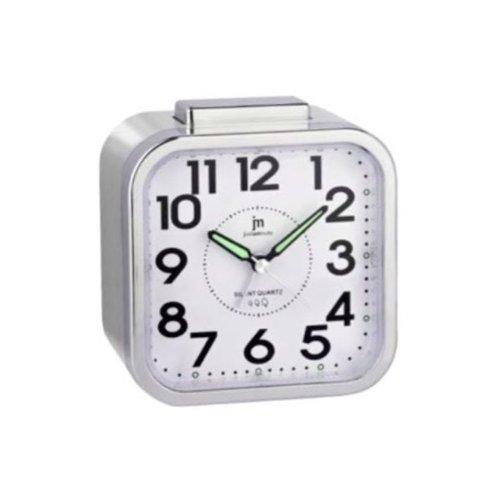 Sveglia al quarzo analogica con luce, snooze (ripetizione dopo 5 minuti) e suoneria su campana metallica con crescendo. Movimento continuo silenzioso.