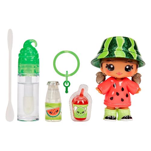 Adorabile bambola profumata con kit per creare il tuo lucidalabbra in 5 semplici Passaggi: 1. trova il lucidalabbra, 2. trova il tuo sapore, 3. aggiungi aroma al lucidalabbra (bottiglia di soda), 4. aggiungi colore (bottiglia boba), 5. agita per mescolare e osservarlo cambiare magicamente colore; 6 profumi/sapori tra cui scegliere; oltre 50 combinazioni da creare; Porta con te la tua bambola e il Lucidalabbra con il portachiavi incluso oppure rimuovili per divertirti con le bambole. Tanti personaggi divertenti da collezionare! Tutti con profumi diversi
