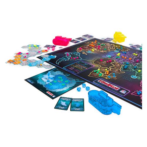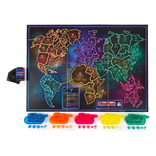 Conquista la plancia di riskiko più grande di sempre e raggiungi il tuo obiettivo segreto sfidando i tuoi amici; scegli il colore della tua armata, distribuisci con astuzia i tuoi rinforzi, attacca e spostati strategicamente sui nuovi territori per raggiungere il tuo obiettivo segreto. Questa edizone deluxe contiene cinque set di gioco completi con armate, dadi e contenitori di cinque colori inediti per una sfida all/ultima battaglia.