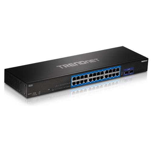 Lo Switch di TRENDnet Gigabit 24 Porte con 2 x Slot 10G SFP+, modello TEG-30262, fornisce prestazione di larghezza di banda elevata, facile da utilizzare e affidabile. Questo switch offre due slot 10G SFP+ per connessioni di rete ad alta velocità, che forniscono una soluzione economica aggiungendo una capacità di collegamento a 10G a una rete SMB. Dotato di alloggiamento in metallo robusto e comprendente di staffe per il montaggio a rack, questo switch 10G SFP è particolarmente adatto per le installazioni a rack 19” 1U.