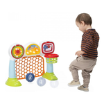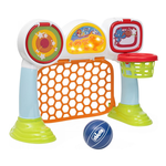 3 modalità di gioco: usa la morbida pallina per fare goal e colpire la rete, per fare canestro oppure per colpire il bersaglio. Ogni volta che la pallina colpisce i sensori, il tabellone luminoso si illumina e si attivano suoni di incoraggiamento.