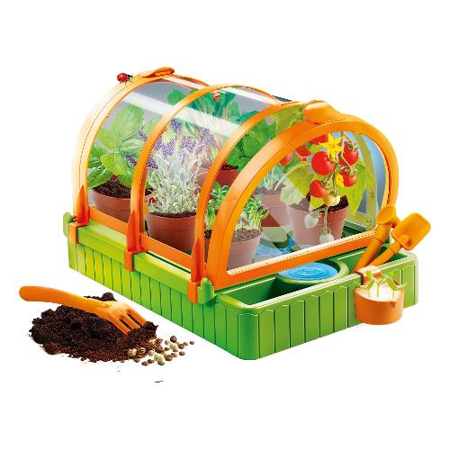 Una nuovissima serra con un moderno design per scoprire i segreti della coltivazione biologica! Con un kit completo di strumenti e degli speciali vasetti appendibili per la germinazione che aiuteranno il bambino nella semina e nella coltivazione delle piante! Il manuale scientifico accompagna il bambino alla scoperta dei segreti dell'agricoltura... per diventare super esperto di botanica!