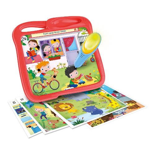 Un divertente gioco a quiz con programma di schede educative realizzato con illustrazioni chiare e semplici per aiutare i bambini a svolgere le prime associazioni logiche. La penna ergonomica e interattiva aiuta i bambini a scoprire la risposta corretta attraverso effetti sonori e luminosi; verde per isposta esatta e rosso per quella sbagliata. Batterie incluse nella confezione