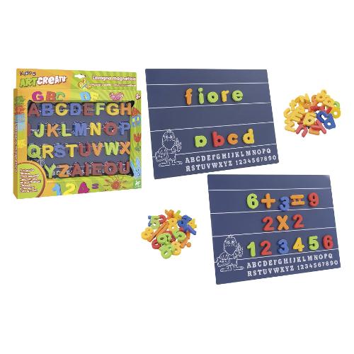 Lavagna magnetica con lettere e numeri. Divertiti a comporre le parole che vuoi o a fare tutte le operazioni matematiche possibili. Puoi usare anche il gesso. Età consigliata 3+.