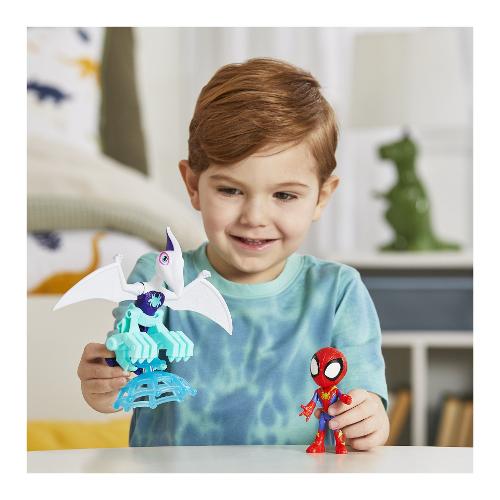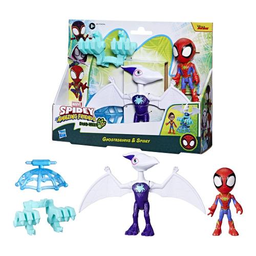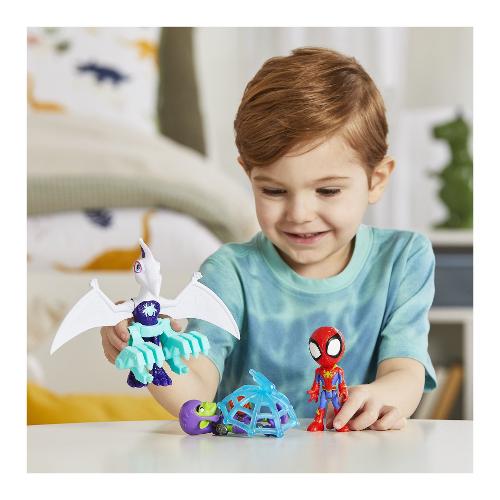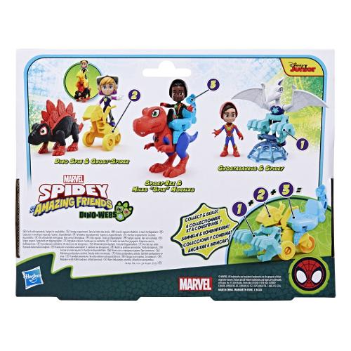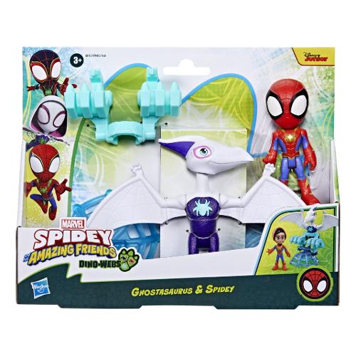 Unisciti alle nuove avventure "dino-webs" dello spidey team, con questa confezione da 2 action figure dei supereroi marvel ghostasaurus e spidey! Questo set di action figure di "spidey e i suoi fantastici amici" della marvel include un giocattolo snodabile da 10 cm di spidey e un giocattolo snodabile da 12,5 cm di ghostasaurus. L'action figure dell'eroe presenta una tuta di spider-man con decorazioni dino-webs, oltre a una maschera che si alza e si abbassa! Basta sollevare la maschera dell'action figure di spidey per rivelare il suo volto. È tempo andare in missione? Abbassa la maschera per indossare il costume e prepararti per la prossima impresa! Colleziona tutti gli accessori dinosauro presenti nell'assortimento "spidey dino con personaggi e accessori" per costruire un mini veicolo e vivere un divertimento ancora maggiore a colpi di ragnatela! Incoraggia i bambini e le bambine dai 3 anni in su a immaginare grandi avventure con tutti altri giocattoli della linea hasbro "spidey e i suoi fantastici amici" (ciascuno venduto separatamente, secondo disponibilità).