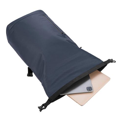 Zaino di alta qualità con chiusura roll-top per laptop fino a 15,6" e MacBook Pro fino a 16". Realizzato in materiale rivestito riciclato e idrorepellente.