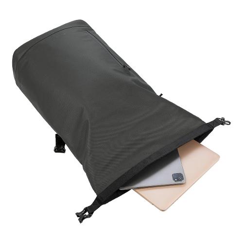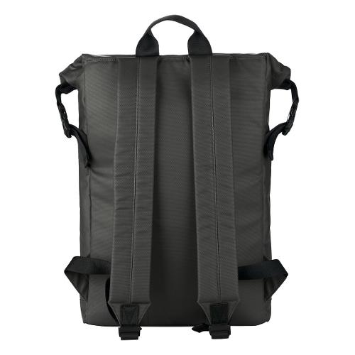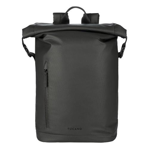 Zaino di alta qualità con chiusura roll-top per laptop fino a 15,6" e MacBook Pro fino a 16". Realizzato in materiale rivestito riciclato e idrorepellente.