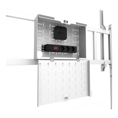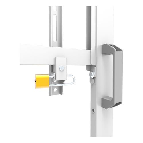 Progettato con una struttura robusta, MOVE Go XL offre la soluzione perfetta per schermi di grandi dimensioni e ultra larghi da 105" (touch). Il supporto da pavimento offre la regolazione manuale dell'altezza in 2 posizioni preimpostate, che vanno da 129 a 139 cm, garantendo un'altezza di visione ottimale. Per una maggiore sicurezza, lo schermo può essere fissato in posizione bloccando le staffe con un lucchetto (non incluso). Inoltre, sono inclusi e opzionali per l'installazione un ripiano multimediale (montabile anteriormente e posteriormente) e un vano ferramenta ventilato con serratura e apertura per i cavi.
