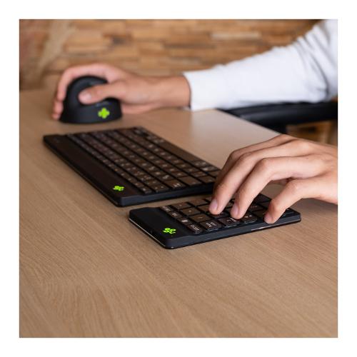 Questo tastierino numerico è ultrasottile, quindi i tuoi polsi sono in una posizione piatta e naturale durante la digitazione. Lo speciale meccanismo a forbice dei tasti assicura una pressione leggera, quindi è necessaria meno forza per digitare.