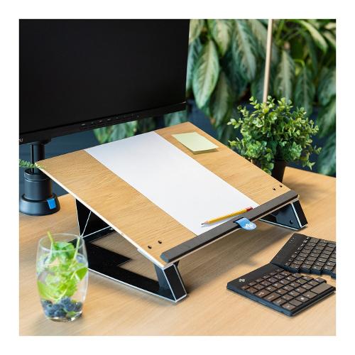 Vuoi leggere dalla carta mentre lavori sul monitor? Con Read2Write sei inconsciamente stimolato a lavorare in una postura sana. Posizionando i documenti davanti a te invece che accanto alla tastiera, eviti torsioni inutili. Read2Write solleva il foglio e ha un angolo di inclinazione, così puoi leggere tutto correttamente dalla tua sedia. Ciò ti mantiene automaticamente seduto in una postura eretta.