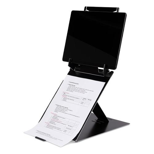 Il supporto per laptop e tablet R-Go Riser Duo ti consente di sollevare sia il laptop che il tablet. Il supporto è facilmente regolabile in 4 posizioni, così puoi lavorare sempre all'altezza degli occhi. Questo porta la testa in una posizione naturale e riduce la tensione nei muscoli del collo e delle spalle. L'R-Go Riser Duo è ultrasottile e leggero: ideale da portare sempre con te in borsa!