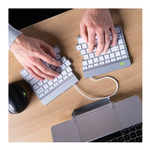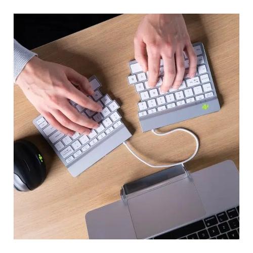 La tastiera R-Go Split è composta da 2 parti separate che puoi utilizzare in qualsiasi posizione desideri. Quindi puoi sempre digitare con i polsi dritti ed evitare di opprimere tendini e vasi sanguigni. Questa tastiera ergonomica divisa può essere trasformata in una tastiera compatta con una mossa utilizzando il magnete integrato.