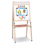 Una maxi lavagna da terra con altezza regolabile che si adatta alla crescita del bambino. Realizzata in legno di alta qualità, si compone di due lati: lavagna tradizionale con gessetti e lavagna magnetica con lettere in legno e penna scrivi e cancella. In più, un ricco kit di giochi educativi incluso.