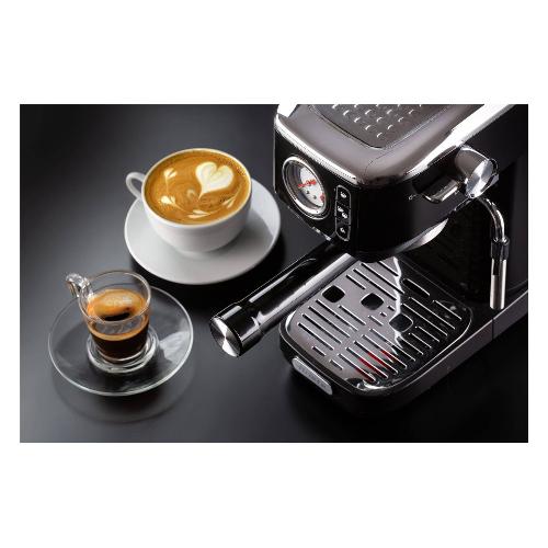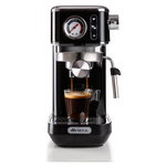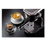Solida preziosa e compatta per caffè gustosi e cappuccini cremosi grazie al dispositivo Maxi-Cappuccino. Manometro integrato. Compatibile con polvere di caffè e cialde ESE. Erogazione acqua calda per tè e tisane.