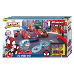Il set da corsa carrera first spidey - è l'ora di spidey! Fa battere più velocemente il cuore dei giovani supereroi. Appositamente progettato per i piloti in età prescolare, porta il divertimento di spidey e dei suoi amici direttamente nella stanza dei bambini. Con due veicoli iconici, spidey e spin, due giocatori possono avere emozionanti duelli su una pista da corsa lunga 2,4 metri. Gli elementi di torsione sulla pista offrono tanto divertimento e una sfida extra. Ogni giro è una nuova missione in cui abilità e azione sono fondamentali. Preparati per un divertimento di corsa finale con il set spidey - è l'ora di spidey! - dove i piccoli fan diventano grandi eroi!