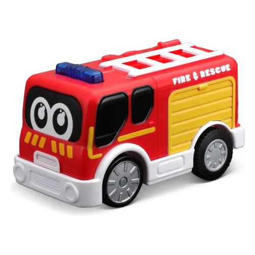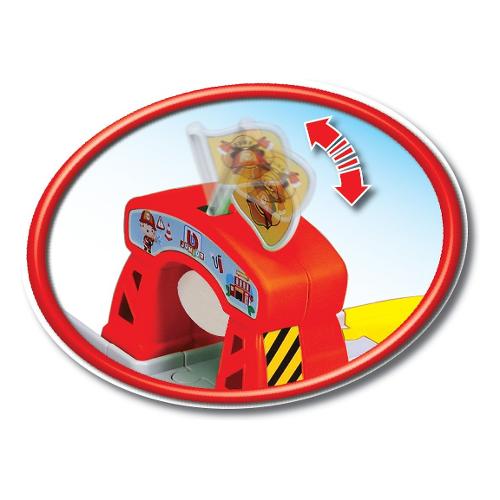 Pista infinita facile da costruire con tunnel. Funziona secondo il principio dello scuotimento della macchinina, che viene poi lanciata sulla pista e guidata. Quando la macchinina passa attraverso il tunnel, la bandiera posta sul tunnel si muove. Il camion dei pompieri ha effetti di luce.