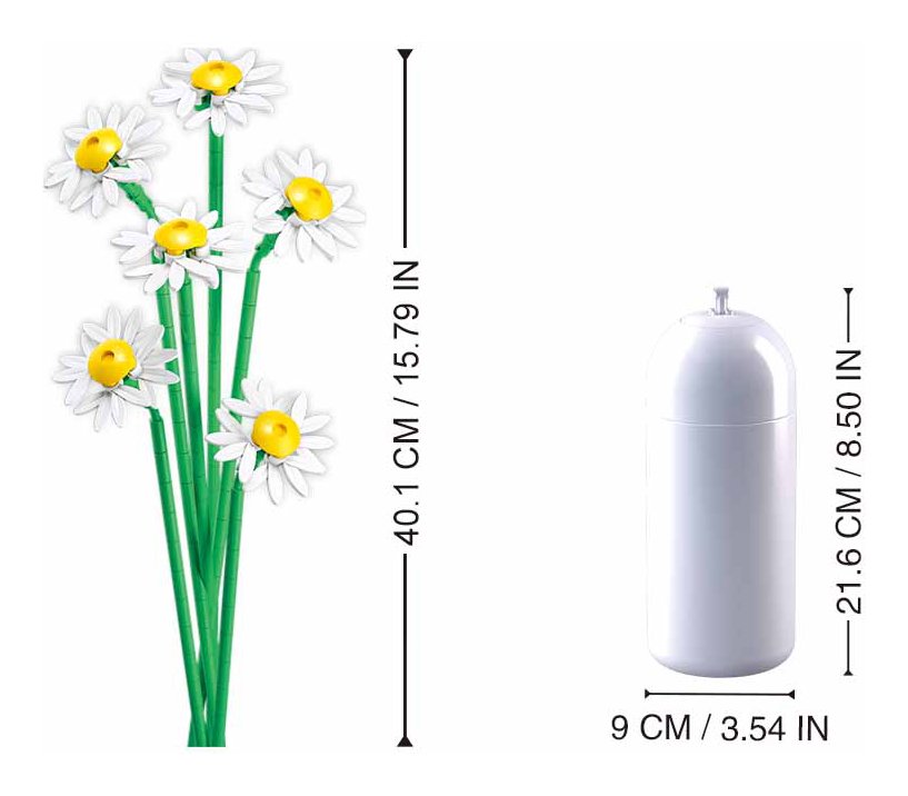 Questo set di costruzioni di fiori margherite in vaso presenta elementi in plastica, Lego compatibili, che permettono di creare fiori che non appassiscono mai. Perfetto come idea regalo in occasione della Festa della Mamma o per altre ricorrenze e anniversari.