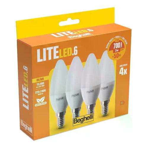 Set lampadine led (4pz) candela E14 (7W) , luce calda LITE LED 6 58043
