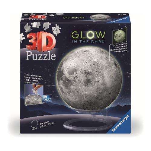I 72 pezzi di puzzle formano il piccolo satellite della terra, e una volta assemblati, si illuminano al buio!