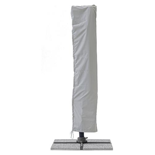 Struttura in alluminio verniciata a polvere (Poliestere). Palo 93x57 mm. 8 stecche 28x18 mm. Telo grigio chiaro in Poliestere 250 gr/mq con rivestimento in pa (Poliammide) con camino antivento. Base a croce in acciaio. Palo girevole 360° con pedalina. Inclinazione verticale con impugnatura a 4 posizioni. Predisposizione lampada led cod.0795364 e speaker 0795365