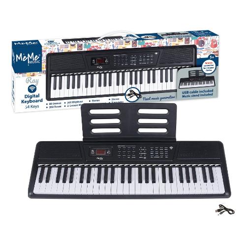 Tastiera digitale a 54 tasti, passo pianoforte, connessione wireless. 200 suoni, polifonia a 4 note, 200 ritmi con gestione facilitata degli accordi, 80 brani, sequencer per la registrazione e riproduzione. Metronomo. Transpose. Vibrato, sustain. Controlli generali Volume, Start/Stop/Tempo, Single, Finger, Follow, Eco, Split. Connessione wireless con controlli di volume e avanzamento tracce. Presa per adattatore di rete (non incluso). Prese per cuffie e microfono a condensatore (non fornite), leggio. Cavo USB per power bank (incluso). Amplificazione stereo. Batterie AA non incluse.