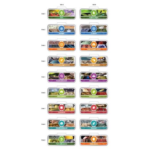 - 9 vetrini illustrati su entrambi i lati per scoprire 18 categorie e più di 70 video della BBC, 144 immagini e 432 informazioni scientifiche.
