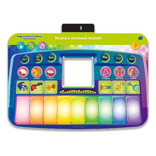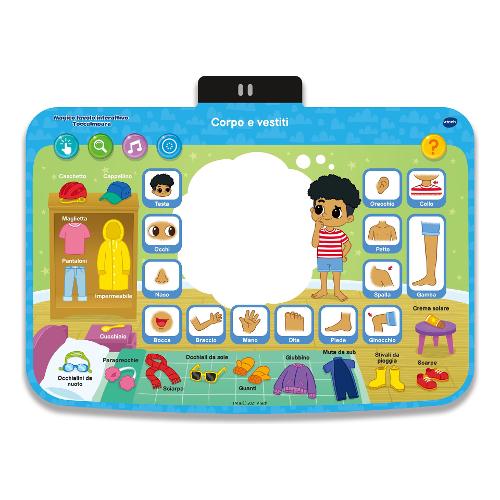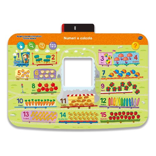 Lettore musicale, orologio, calendario, cornice per personalizzare il proprio spazio di lavoro, 4 schede interattive e tattili per scoprire diversi temi - l’alfabeto, i numeri,