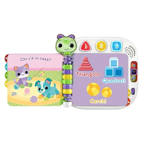 - 13 pagine colorate e plastificate adatte alle manine dei più piccoli. - interattivo: premendo il pulsante bruco, il bambino testa