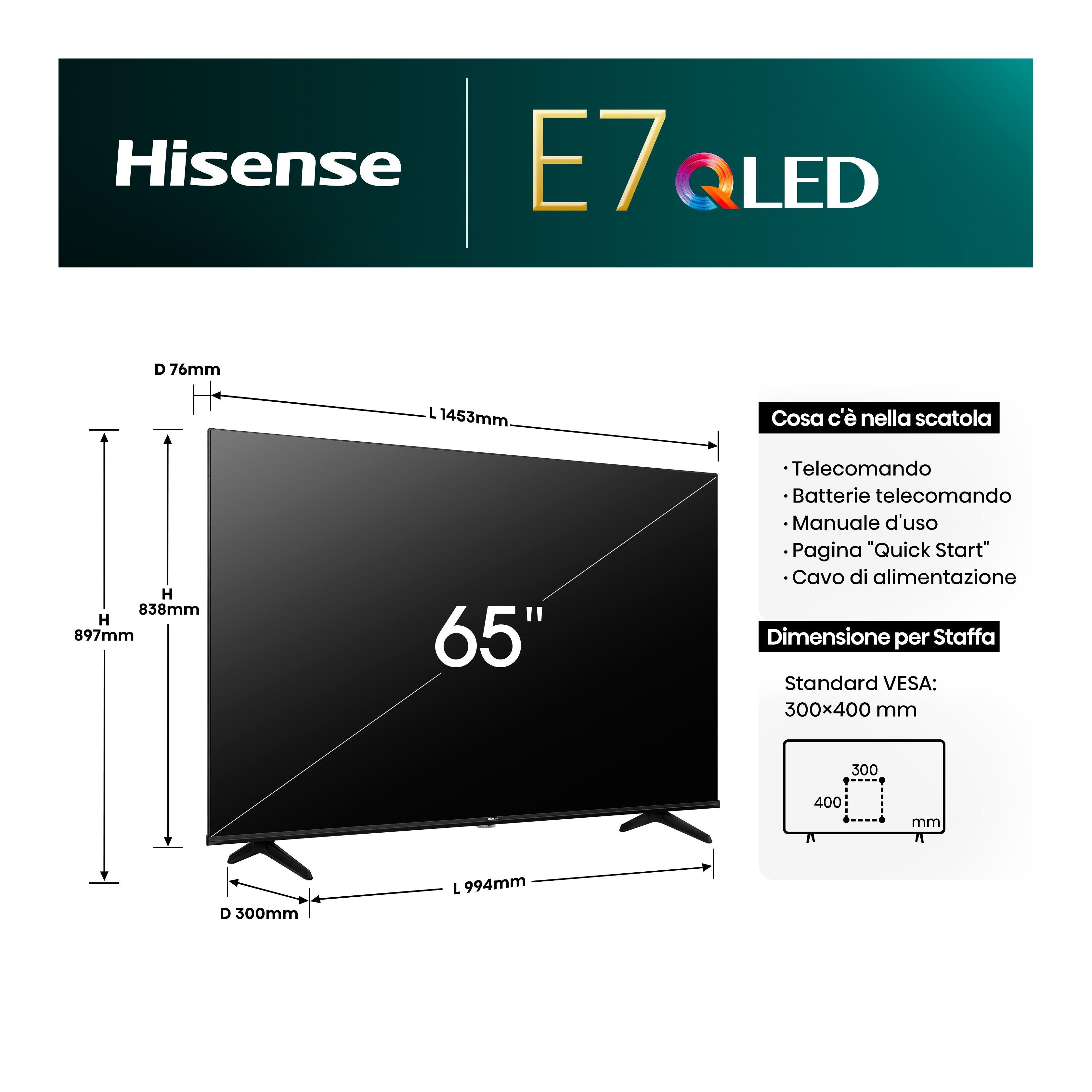 Tv 65" ( QLED ) Vidaa U E7 SERIES 65E79NQ Black 20013282