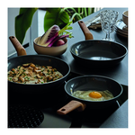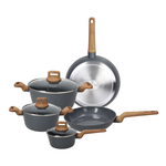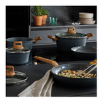 La batteria di pentole e padelle 8 pezzi T-care My Cooking fa parte del nuovo set cottura del marchio Tognana, realizzato in alluminio 100% riciclato con un rivestimento interno antiaderente PFAS Free ecologico e naturale, per un nuovo modo di cucinare, più salutare e sostenibile. Il corpo in alluminio riciclato e forgiato permette una distribuzione uniforme del calore; il fondo ad alto spessore rende casseruole e padelle adatte a tutti i piani di cottura, compresa l'induzione; il rivestimento esterno di alta qualità permette una forte resistenza ad alte temperature. I manici con finitura soft touch effetto legno sono antiscivolo ed antiscottatura, per un set cottura di qualità, versatile e di design dalle finiture grigio lucide all'interno ed opache all'esterno. Le pentole e padelle T-Care sono Nickel free, PFAS free e PFOA free, e sono idonee al lavaggio in lavastoviglie.