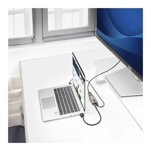 Questo adattatore da HDMI 2.1 a DisplayPort 1.4 collega una sorgente video HDMI 8K 60Hz, come un laptop o un desktop, a un monitor DisplayPort.
