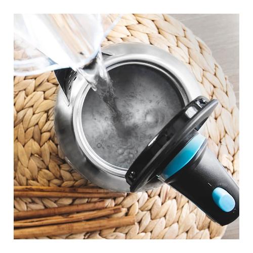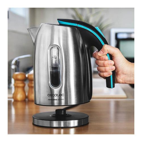 Potente e pratico, così è il bollitore d'acqua ThermoSense 220 Steel. Porta a ebollizione fino a 1,2 litri d'acqua in pochi istanti. I suoi 1630 W di potenza scaldano fino a 6 tazze simultaneamente. È stato progettato con acciaio inossidabile della migliore qualità e un indicatore del livello d'acqua. E per renderlo ancora più comodo, la sua base permette una rotazione di 360º che si separa dalla caraffa.