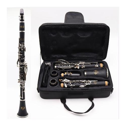 Clarinetto Sib, 18chiavi, corpo in ebanite, chiavi in nickel, con imboccatura e custodia rigida nera.