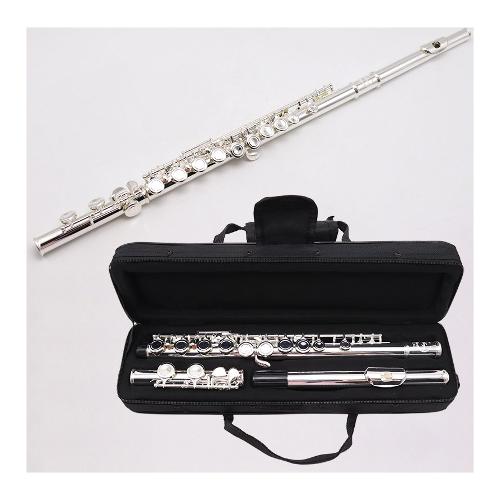 Flauto in Do, 16 chiavi, corpo e chiavi argentate, Sol fuori linea, MI snodato, con astuccio rigido nero.
