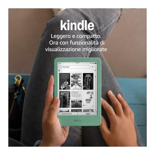 Ti presentiamo il nostro Kindle più leggero e compatto, ora con funzioni di visualizzazione migliorate e cambi di pagina più rapidi. L’illuminazione frontale è più luminosa del 25% (se impostata al massimo), pari a quella di Kindle Paperwhite. Grazie all’illuminazione frontale regolabile e alla modalità scura, puoi leggere comodamente sullo schermo da 6’’ antiriflesso, in qualsiasi momento della giornata.