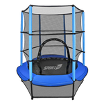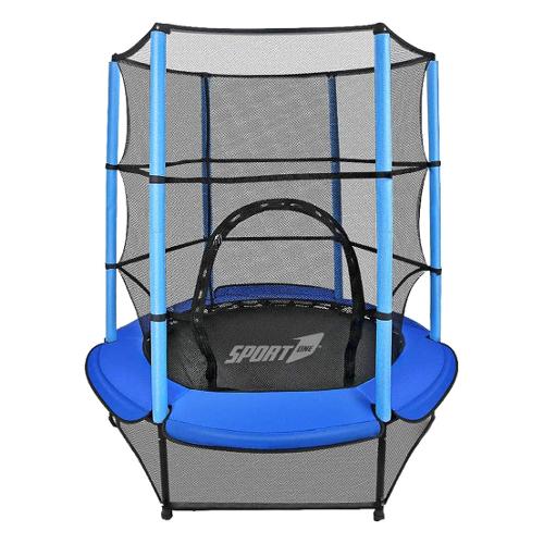 Tappeto elastico gioco per bambini dotato di paletti di sostegno della rete con rivestimento imbottito. Resistente ai raggi u.v e impermeabile è fornito di rete di protezione anti caduta con ingresso dotato di cerniera zip